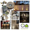 Pour cet éclairage de jardin, nous avons créé le réseau électrique extérieur enterré (tranchées et passages des gaines), posé 10 potelets lumineux dans les massifs et 4 spots pour baliser le chemin du parking voiture à la maison.